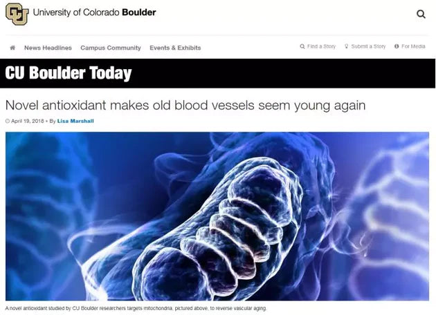 A University of Colorado Boulder study made headlines with its finding that “a novel antioxidant makes old blood vessels seem young again” showing that older adults taking MitoQ experienced vascular function comparable to someone 15–20 years younger.